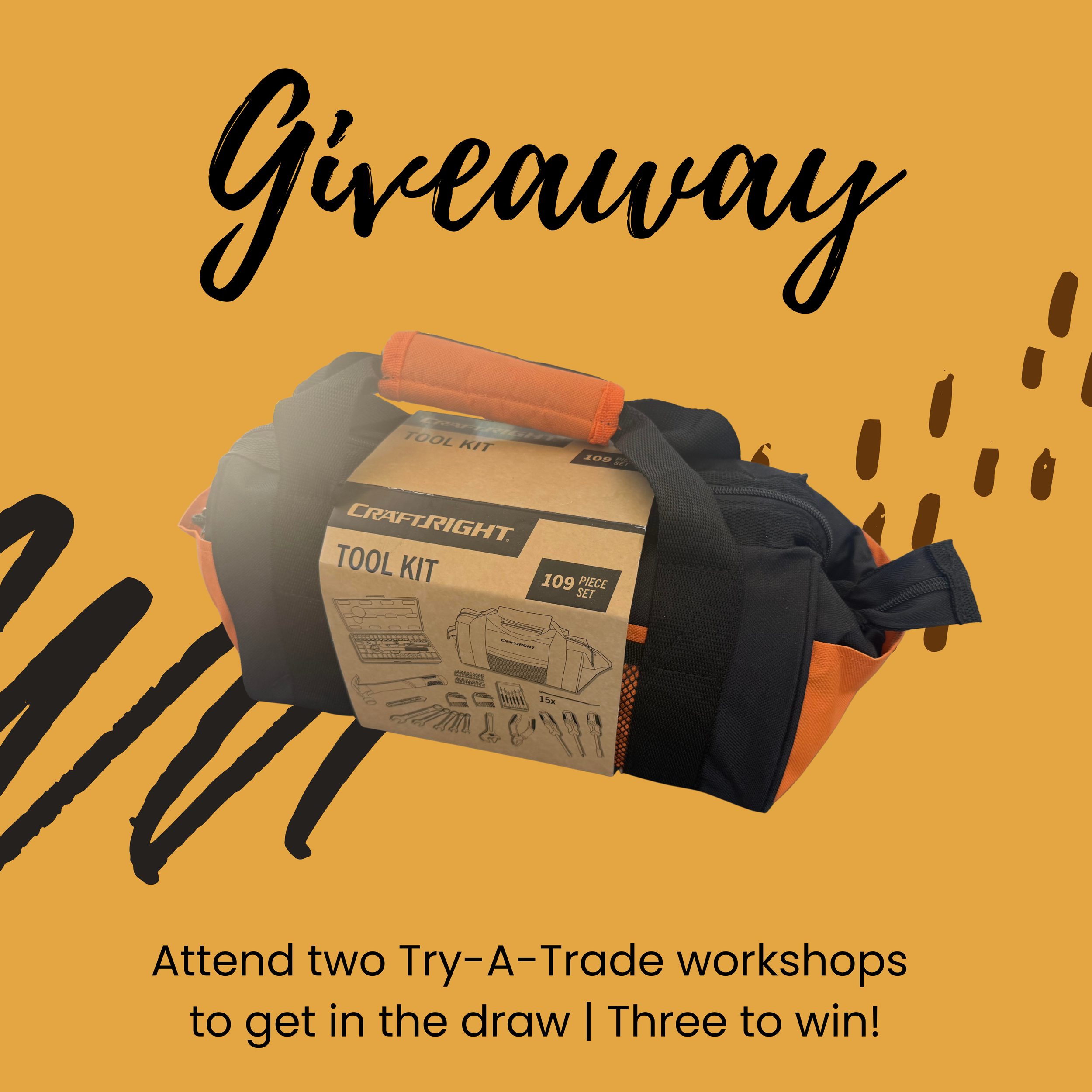 Let us know you want a try-a-trade workshop near you, go in the draw to win your own toolkit.